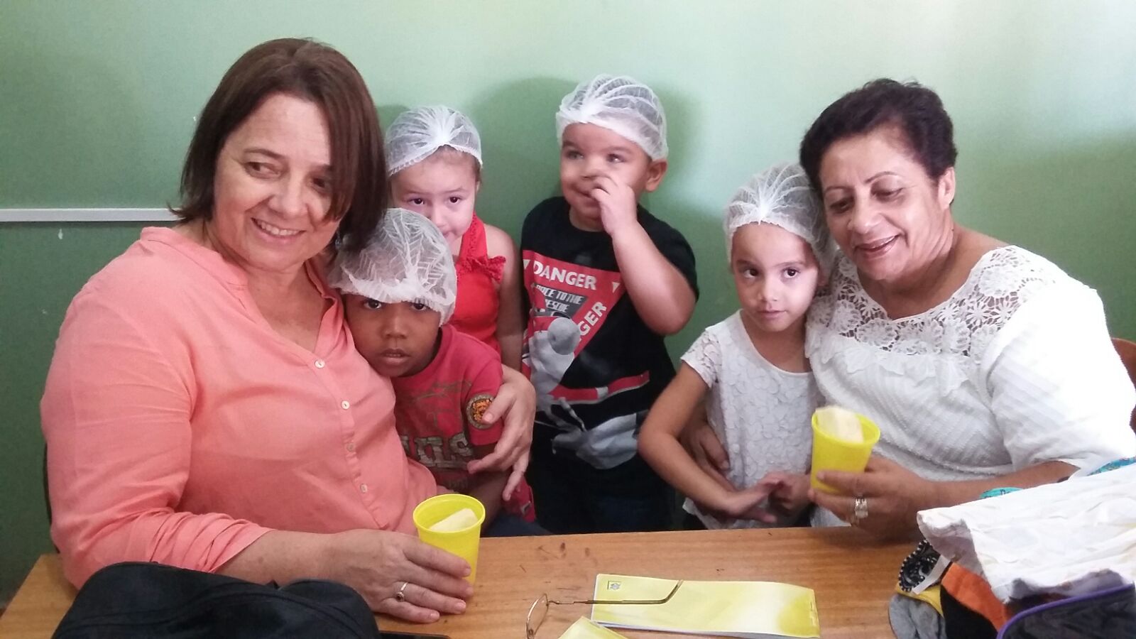 A turma de Educação Infantil da professora Eliana, trabalhou alimentação saudável, usando frutas como exemplo. Em uma das aulas, os alunos consumiram abacaxi e trabalharam a letra A.
