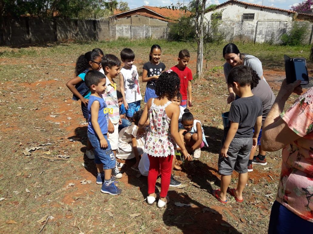 Já os aluno do turno vespertino juntamente com o diretor Edson e a professora Diana, realizaram o plantio de uma muda de Ypê no pátio da escola. Eles contaram com a presença dos pais do professor Leonardo, Dona Lourdes e Seu José que doaram a muda para o colégio.
